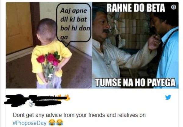 Hilarious Propose Day Memes On Twitter You Must Check Out Right Away Propose day is celebrated in india on 8 february as a day to propose to your significant other, a large numbers of young people give roses to propose to their prospective girlfriend or boyfriend.